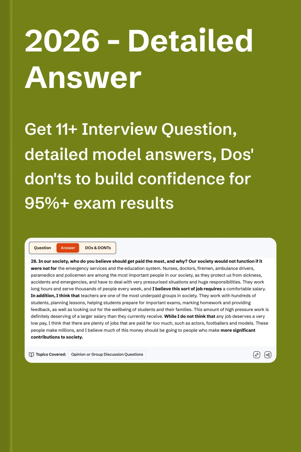 - Model answers with expert-crafted DOs & DONTs for effective guidance.