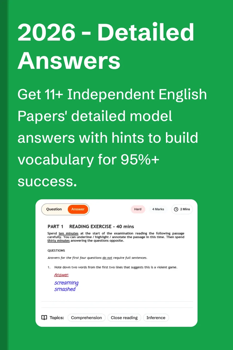 - Practice 24 creative writings, and comprehension to master exam format.