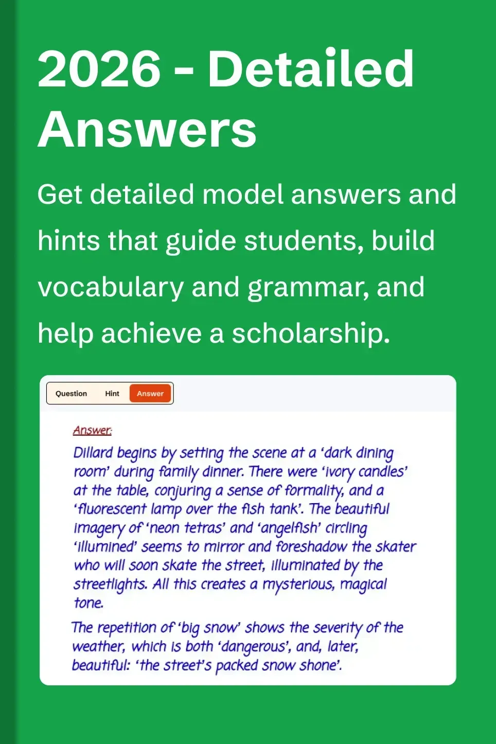 - Get detailed creative writing plans & model answers.