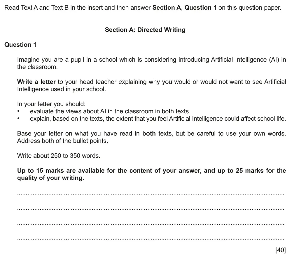Question 01 - Cambridge IGCSE March 2021 TZ2 English Language Composition Paper 2