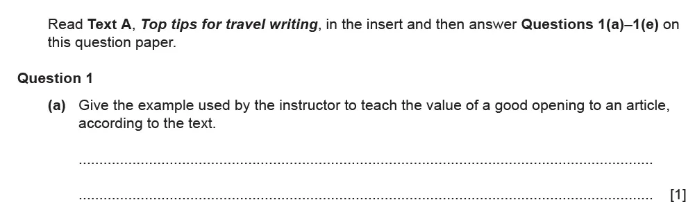Question 01(a) - Cambridge IGCSE March 2021 TZ2 English Language Reading Paper 1