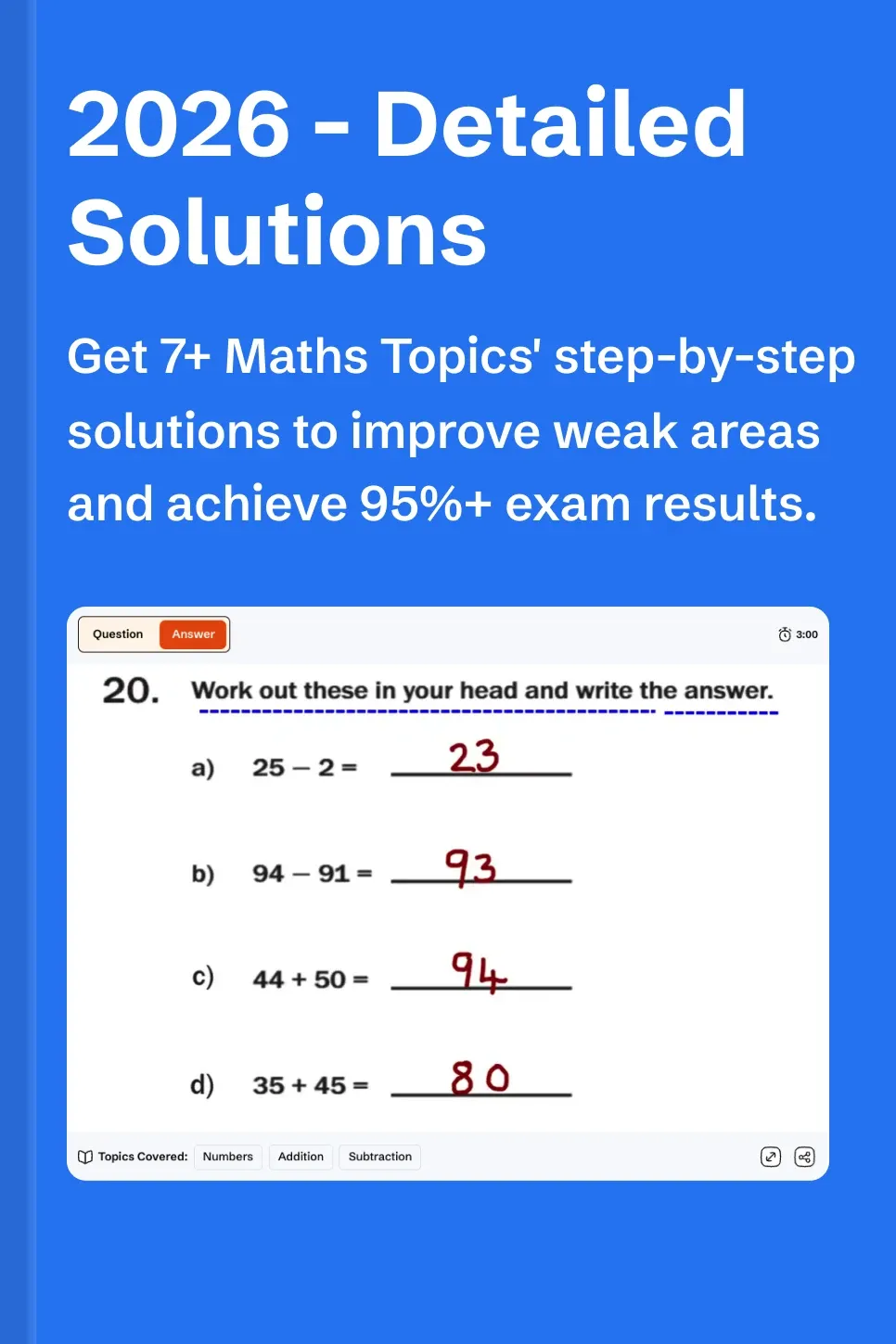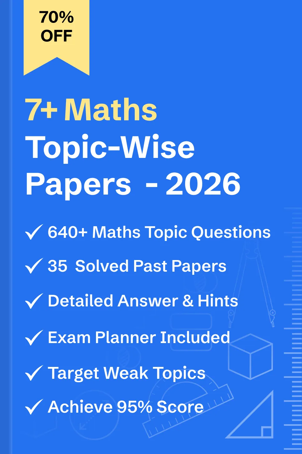 - Practice 640+ solved 7 plus Maths topic-wise questions, tagged by difficulty.